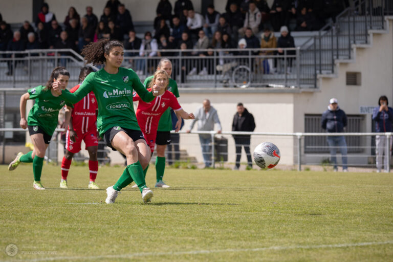 Photos du match de D3 Féminine (Football) opposant ALC Longvic Football à l’Olympique de Valence le 21 avril 2024 au stade Jean Bouhey à Longvic.